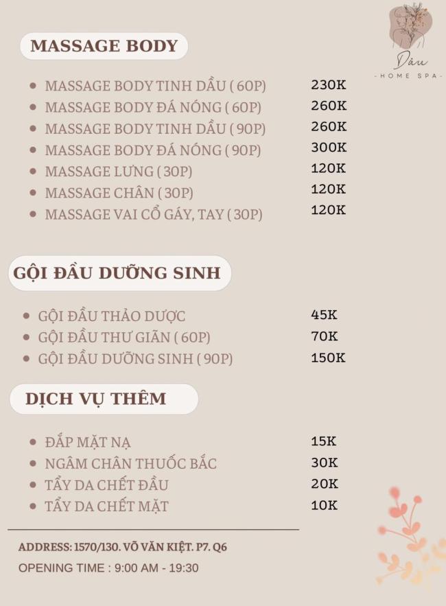 DÂU HOME SPA - CHUYÊN VỀ CÁC DỊCH VỤ DA MẶT, LÀM ĐẸP, MASSAGE THƯ GIÃN, GỘI ĐẦU DƯỠNG SINH. HÃY ĐẾN VỚI NHÀ DÂU ĐỂ TRẢI NGHIỆM DỊCH VỤ, CHÚNG TÔI SẼ KHÔNG LÀM BẠN THẤT VỌNG.